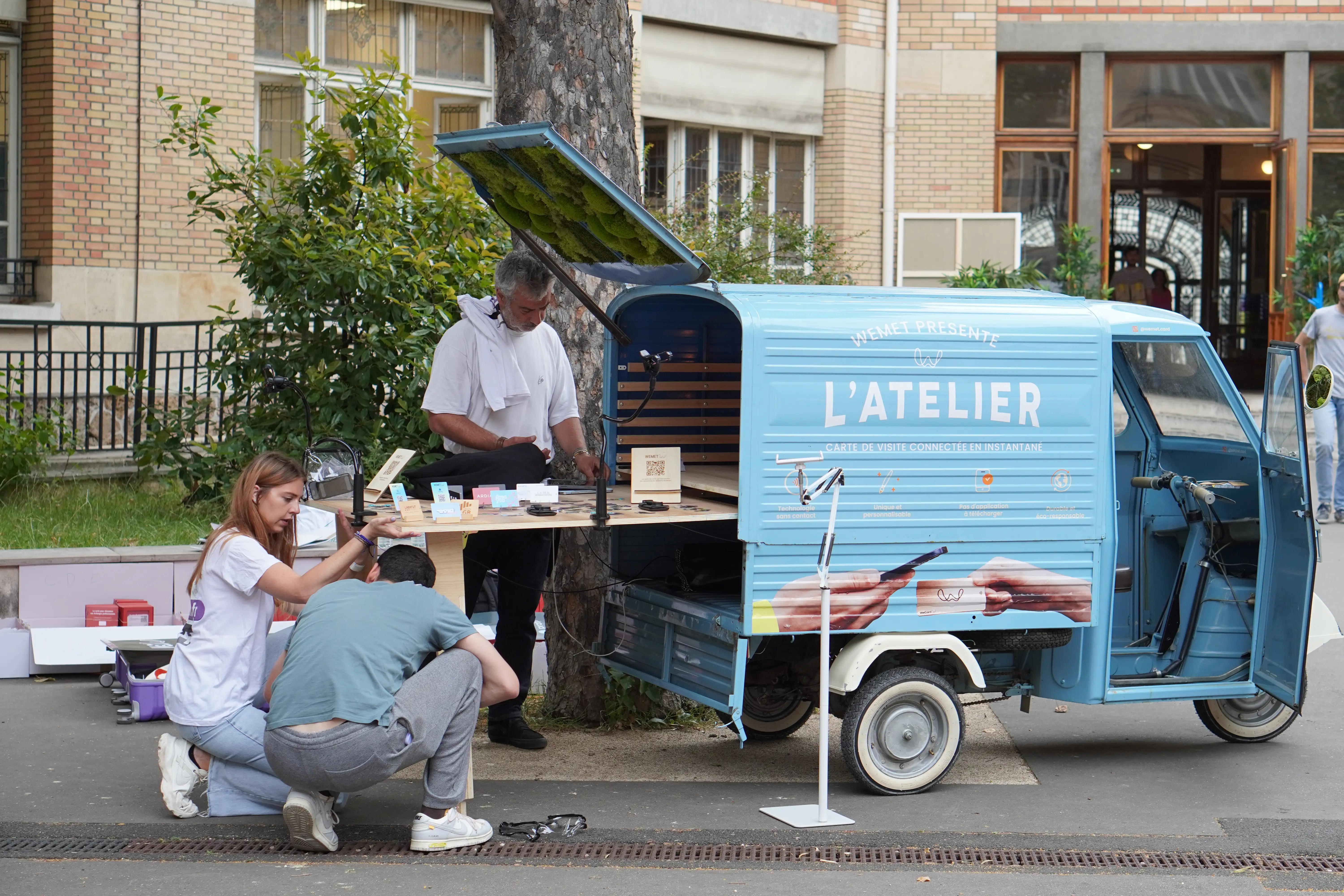 Cela passe par des plaquettes commerciales, des stands interactifs, ou même des cartes de visite connectées.